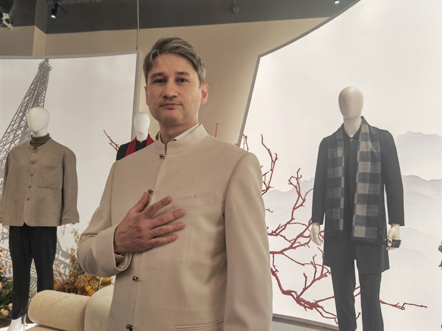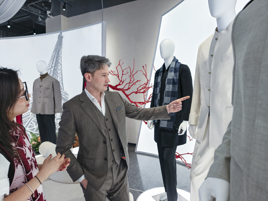 马埃尔是某入口眼镜品牌培训师,他慧眼独具,在旗舰店内“中元素”男装品牌前驻足比对,很快发现一动东说念主细节。