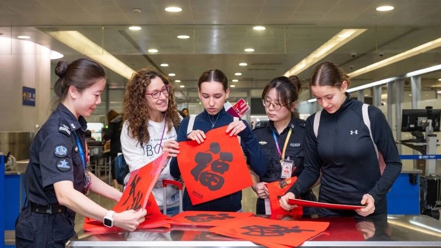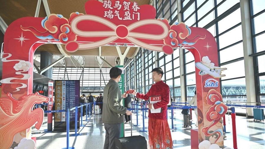 浦东机场联结“中国样·China Young”上海机场东说念主文品牌打造,在两座航站楼内开导了“天马献瑞”走马灯安设、“骏马贺春”拱门等多处春节主题景不雅,3300余盏中国灯笼、1500余个中国结和福字遍地可见,机场所服全新推出红火的马年专属登机牌,到达行李转盘上“随即到”“随即有福”小马玩偶给正在恭候行李的游客增添了一份俏皮暖意。