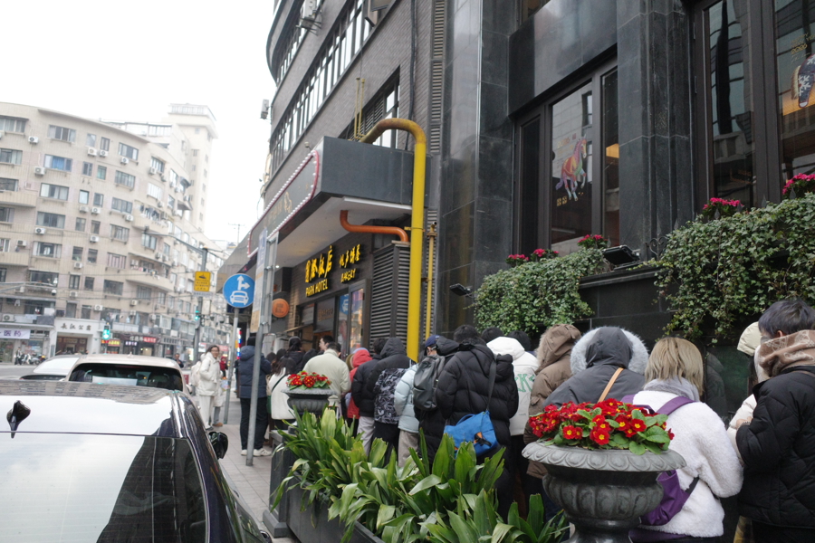 点上一杯搭配蝴蝶酥的“楷尔文船主二十八号拿铁”,新春的滋味便浓郁起来。与之呼应的,是海外饭馆外黄河路上裕如的清甜奶香。蝴蝶酥是春节技术的紧俏吃食,中外游客排起长队,踮脚望向西饼屋内,只为尝一口老上海的经典滋味。